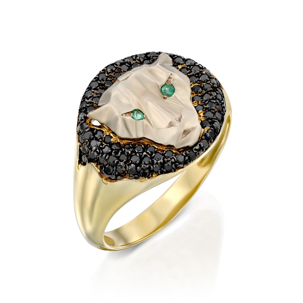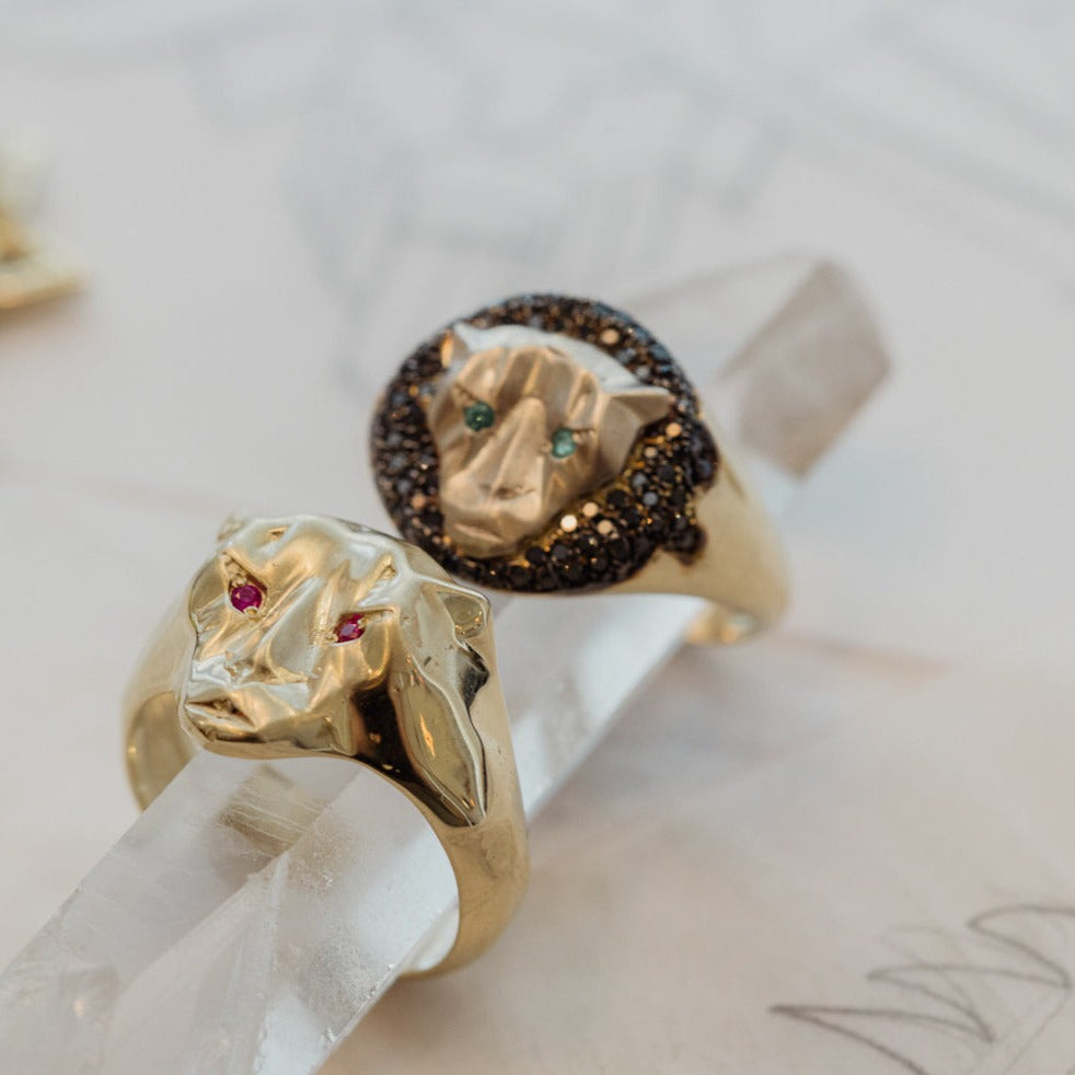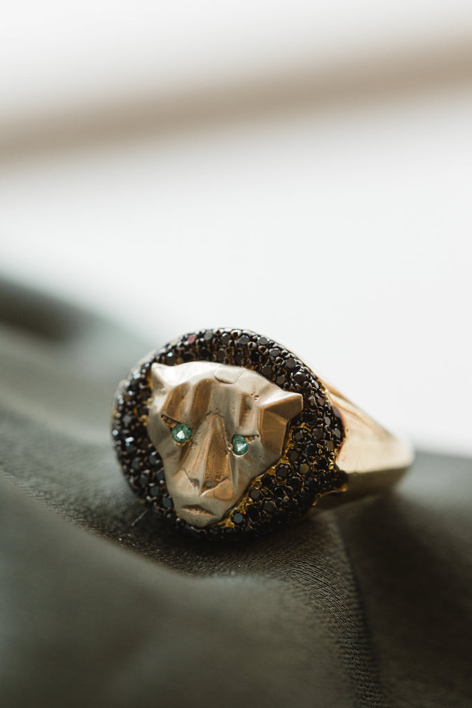 בכל טבעת חקוקה דמות הלביאה - מלכה גאה, חזקה ומגוננת. העיצוב העדין והמדויק משלב את כוחה של מלכת החיות עם אצילותה: ראש מורם בגאווה, מבט נחוש, ועוצמה שקטה הזורמת בכל קו וצורה.