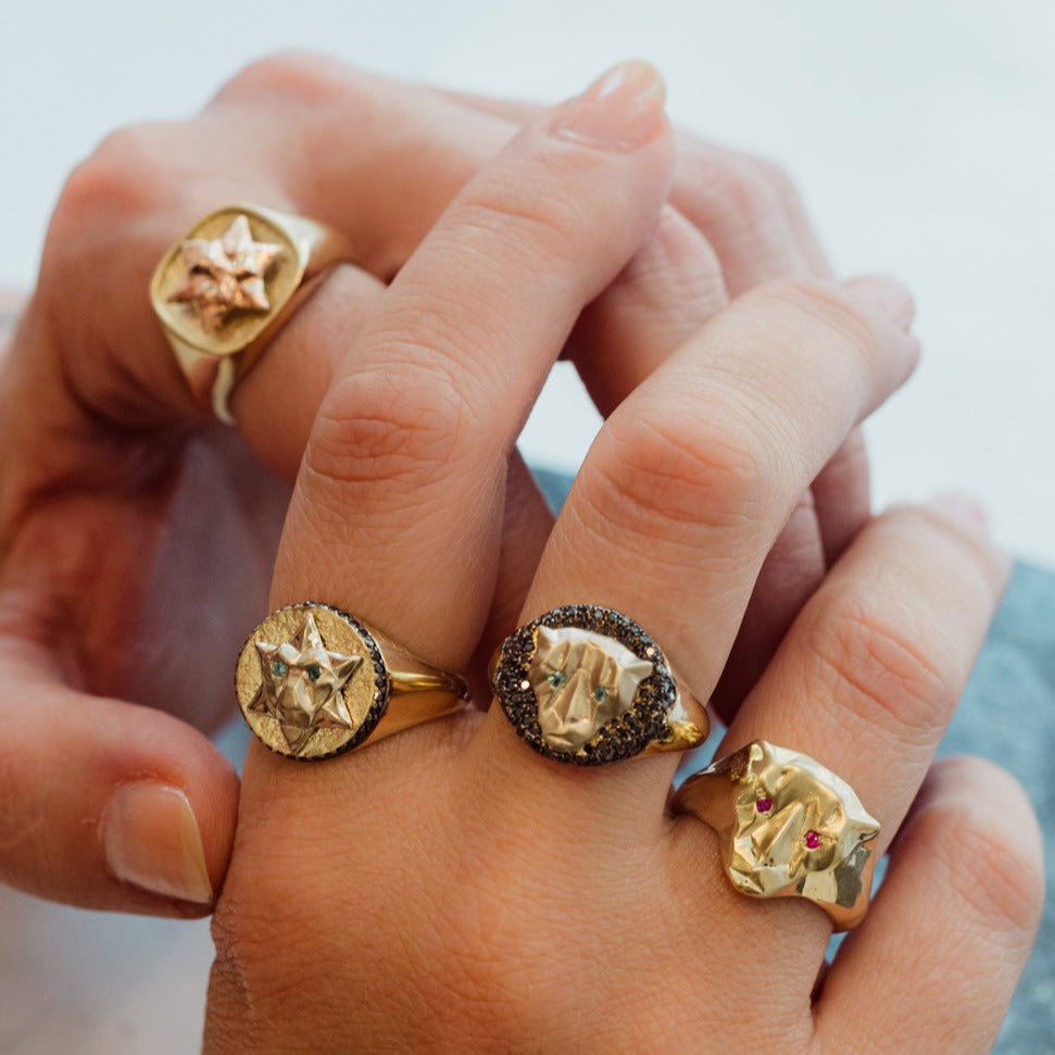 מתוך תקופה של מלחמה וגבורה, עיצבתי את טבעות הלביאה כקמע של כוח - תזכורת מוחשית לעוצמה הטמונה בכל אחת ואחד מאיתנו. כל טבעת היא יותר מתכשיט; היא מגן קסום העשוי זהב, המזכיר לך בכל מבט: את לביאה, אתה אריה, אתם חזקים, אתם עשויים מחומרים של אומץ וגבורה.
