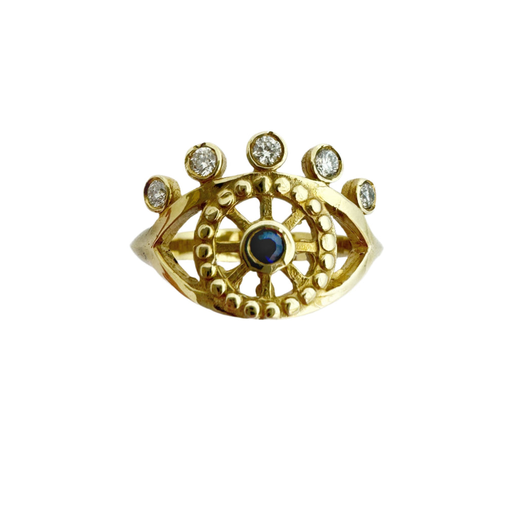 טבעת זהב עין המלכה עם כתר מחומש מיהלומים