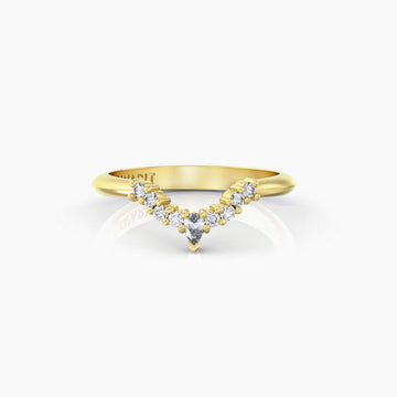 Perfect as a diamond stacking ring, a wedding band to complement a solitaire engagement ring, or a refined everyday jewel, this design combines minimalist elegance with playful detail.